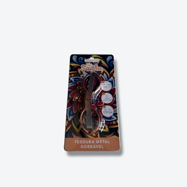 A tesoura Sadhu é feita em metal e tem sistema dobrável, ideal pra carregar com segurança no bolso, case ou mochila. Aberta, garante um corte firme e preciso. Fechada, ocupa pouco espaço e evita qualquer risco.